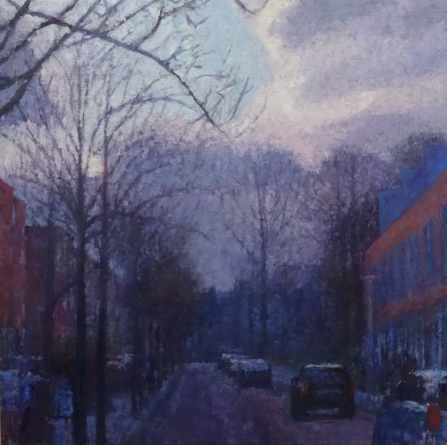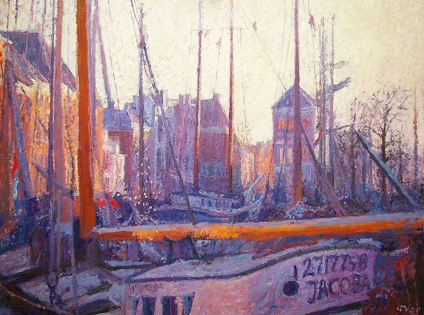 Annemiek Vos studeerde in 1985 af aan academie Minerva te Groningen. Zij doet dit op geheel eigen wijze in een, zoals ze het zelf noemt, modern impressionistische stijl. De toets, die soms aan een grove vorm van pointillisme doet denken, verbeeldt eigentijdse stadsgezichten. Groningen, waar de kunstenaar woont en werkt, is favoriet, maar wordt afgewisseld met beelden van Leeuwarden, Florence en Hamburg. De stadsgezichten van Vos vertonen verwantschap met de traditionele schilderkunst, maar worden naar het heden getrokken doordat Vos verworvenheden van deze tijd – denk aan verkeerslichten en reclameborden – in haar schilderijen toont. Juist deze eigentijdse draai aan het aloude onderwerp `stadsgezichten’ en de goede schildertechniek van Vos maken de schilderijen tot een aantrekkelijk geheel. Ook de bewoners van de stad worden afgebeeld, hierdoor wordt het eigentijdse karakter versterkt en krijgen de schilderijen nog meer dynamiek.