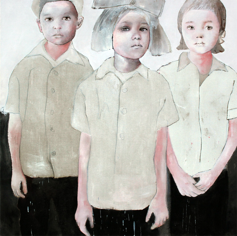 Blikken vol twijfel, genegenheid of soms een ietwat verlegen. De kinderen lijken liever niet op doek te worden vastgelegd, maar in al hun onbevangenheid staan ze daar. Kwetsbaar, in een lege ruimte. Duidelijk nog kind, maar toch ook al een echt individu met een eigen karakter. Hoewel we recht in de kinderziel lijken te kijken, geeft het niet echt een ongemakkelijk gevoel. Het karakter van het kind laat zich raden, maar het is niet zo dat er rafelrandjes aan hun bestaan kleven. Het zijn kinderen zoals kinderen horen te zijn, zichzelf, zij willen zich niet beter of mooier voordoen. Dat het nergens ongemakkelijk wordt komt mede door het subtiele kleurgebruik en de spannende compositie.